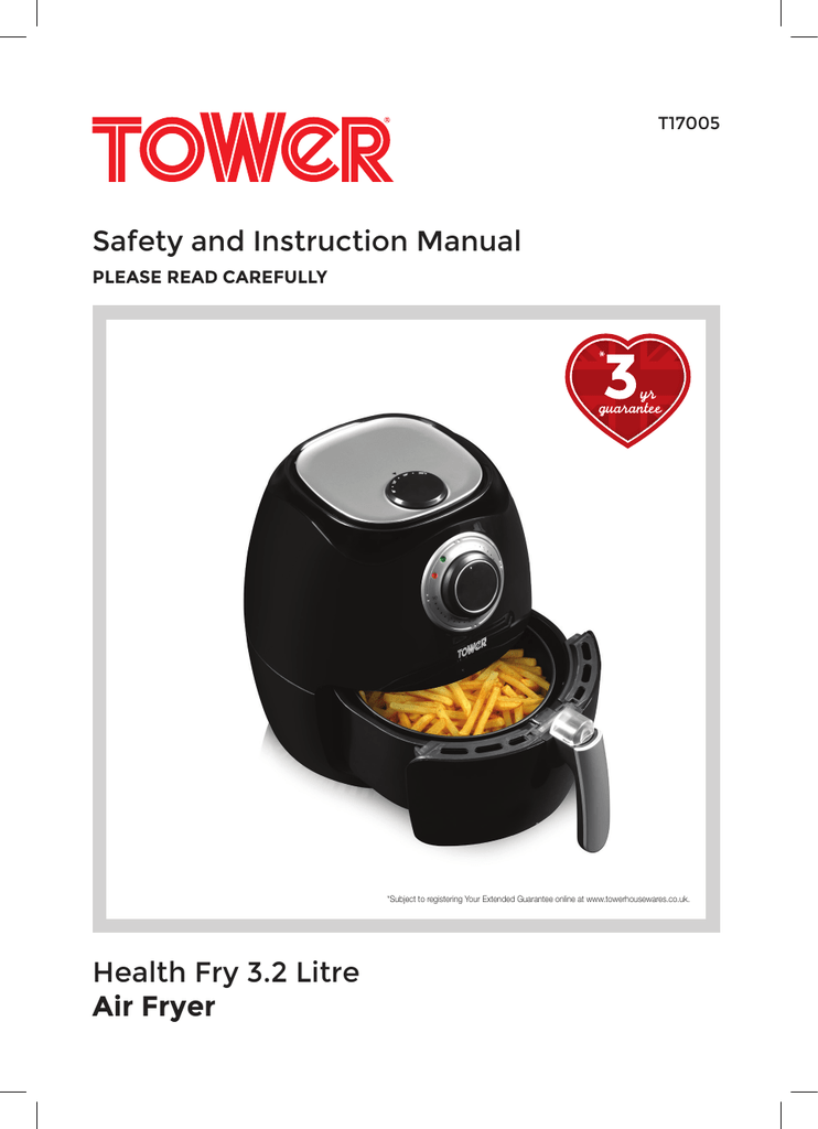 The 43 litre capacity pot and 32 litre capacity basket gives you enough room to cook a full family meal. Page 1 T17005 Safety and Instruction Manual PLEASE READ CAREFULLY Subject to registering Your Extended Guarantee online at wwwtowerhousewarescouk. Discover the Vortx Air Fryer Range.